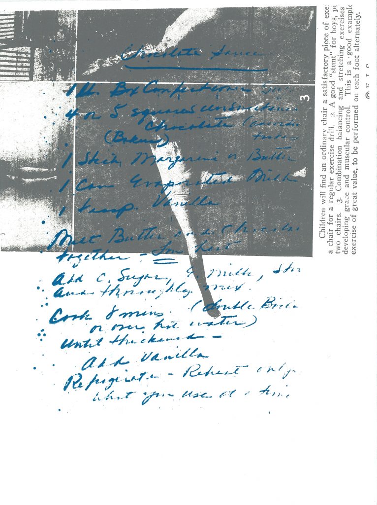 The artist’s use of the medium of printmaking also shows forth the analogue artifact evidence of handwriting which more and more seems to be an ‘art’ of a bygone era. Many of the recipes here reveal how truly human handwriting is with pathos and character—this is a healthy reminder of the value of being authentically human in an era where actual (analogue) flesh and blood human being is threatening to be dissolved.