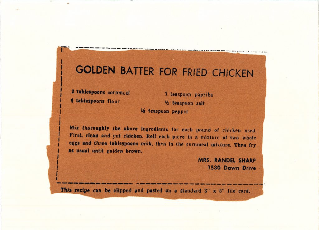 A classicist of the old school may ask: “What do little old recipes have to do with art?” At first glance, it may not be clear. Yet with extended consideration and observation, one comes to the conclusion that a project based upon transforming such an ordinary, everyday artifact, is of significant value that has a great deal to do with art and gives us a great deal to think about. First of all, by putting these cherished heirlooms in a new light, one may be brought to a whole new level of self-understanding and the understanding of one’s place in a human community. Brief perusal of the recipes in this little book reveals many important virtues of Recipe: